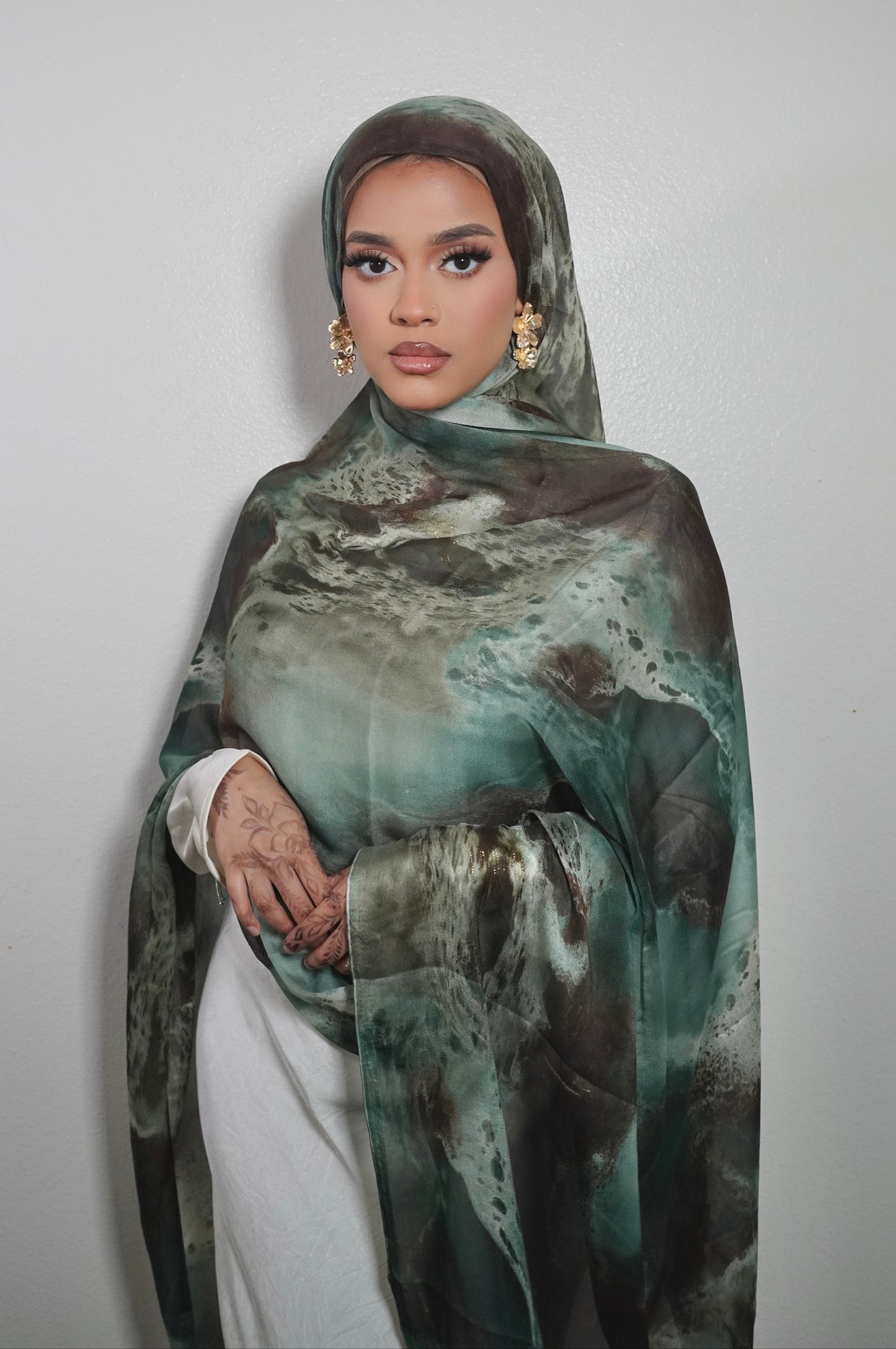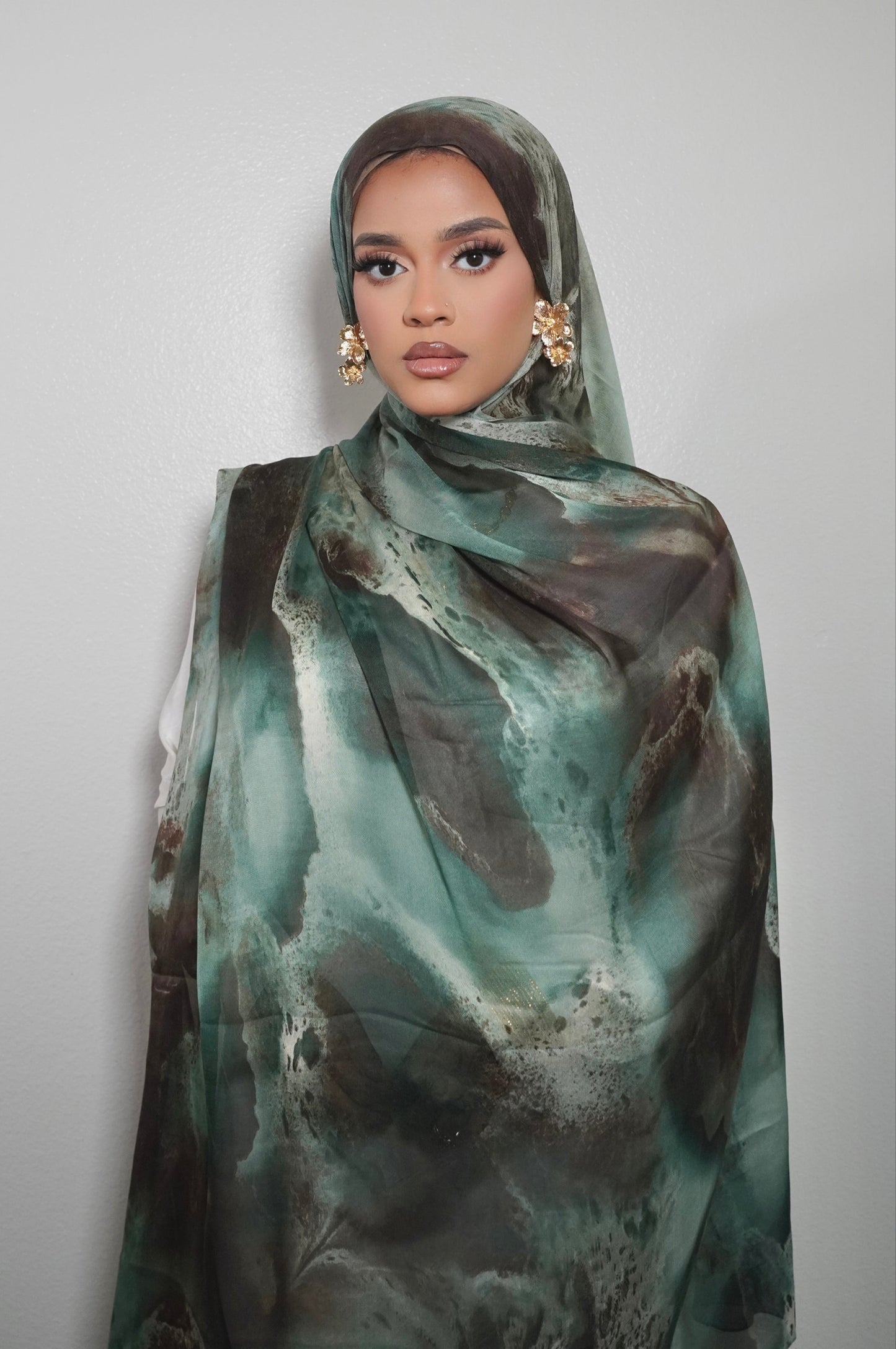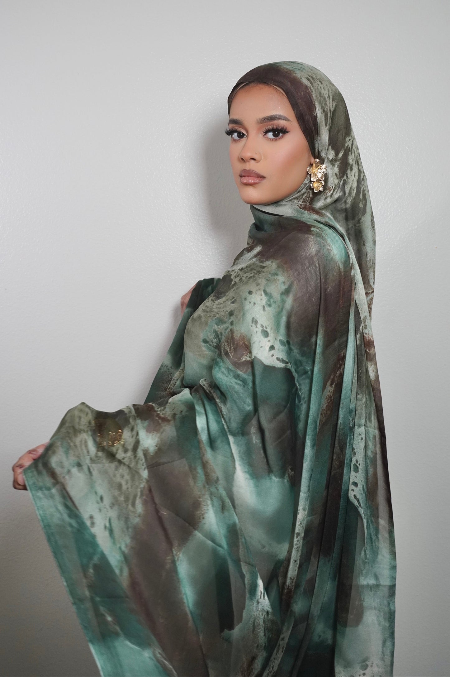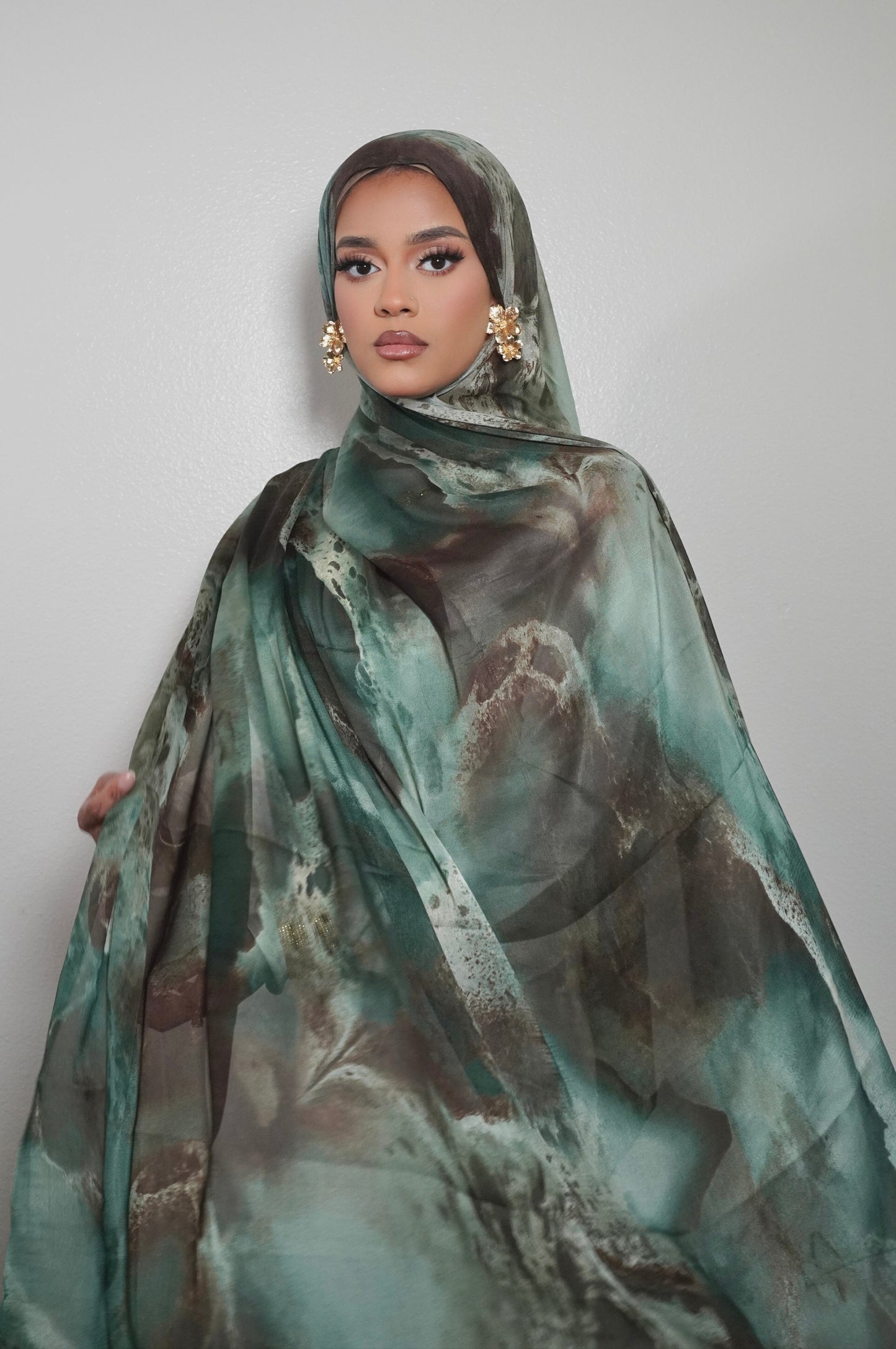 Our Lunora print hijab features a stylish satin chiffon watercolor design and raw edges for a seamless lay. Perfect for staying on-trend while maintaining modesty.