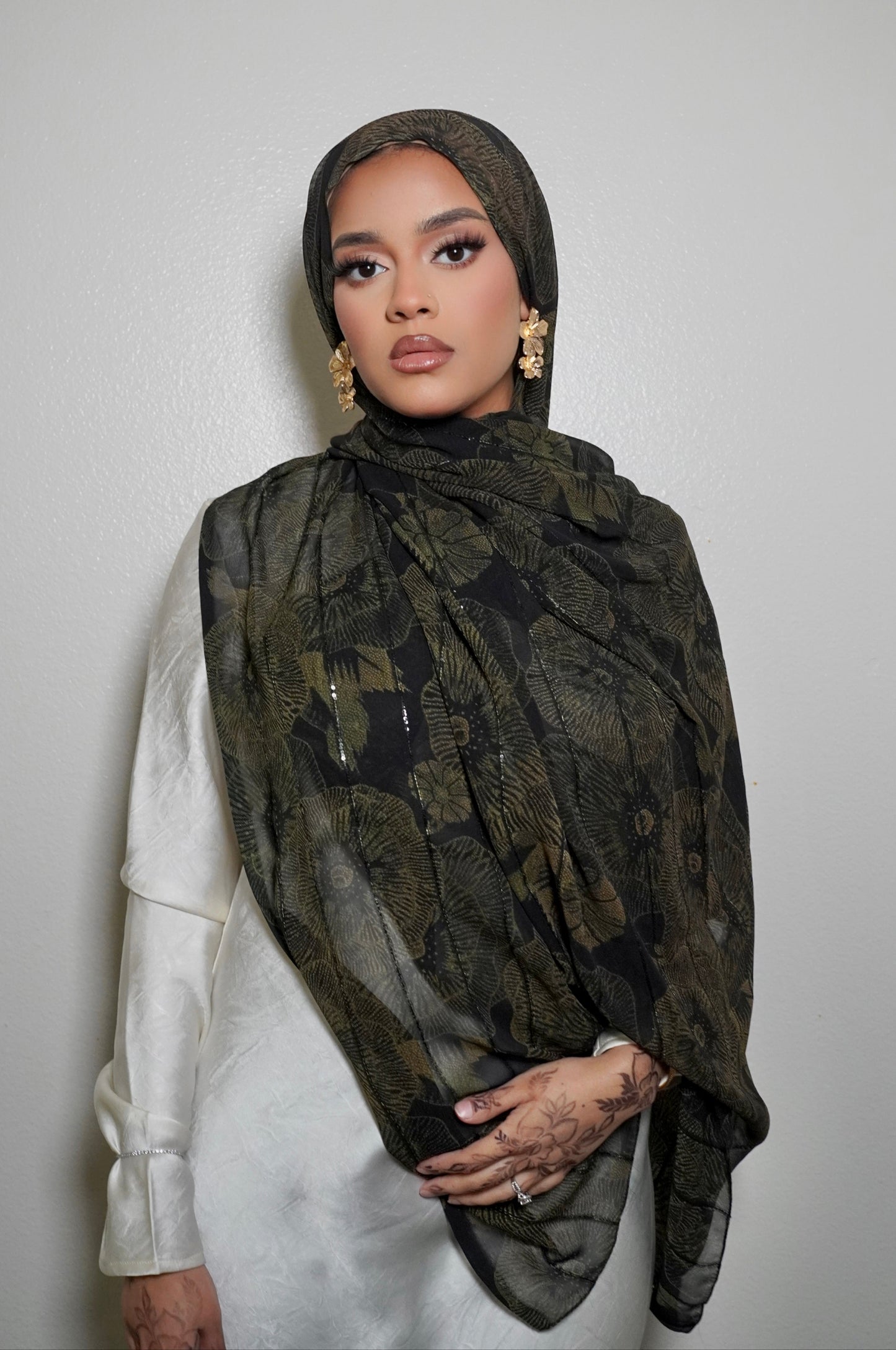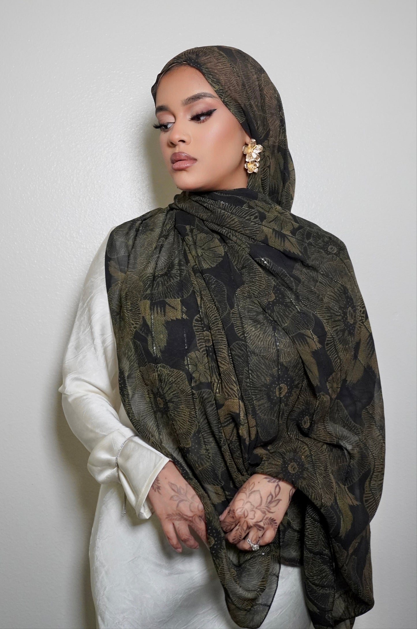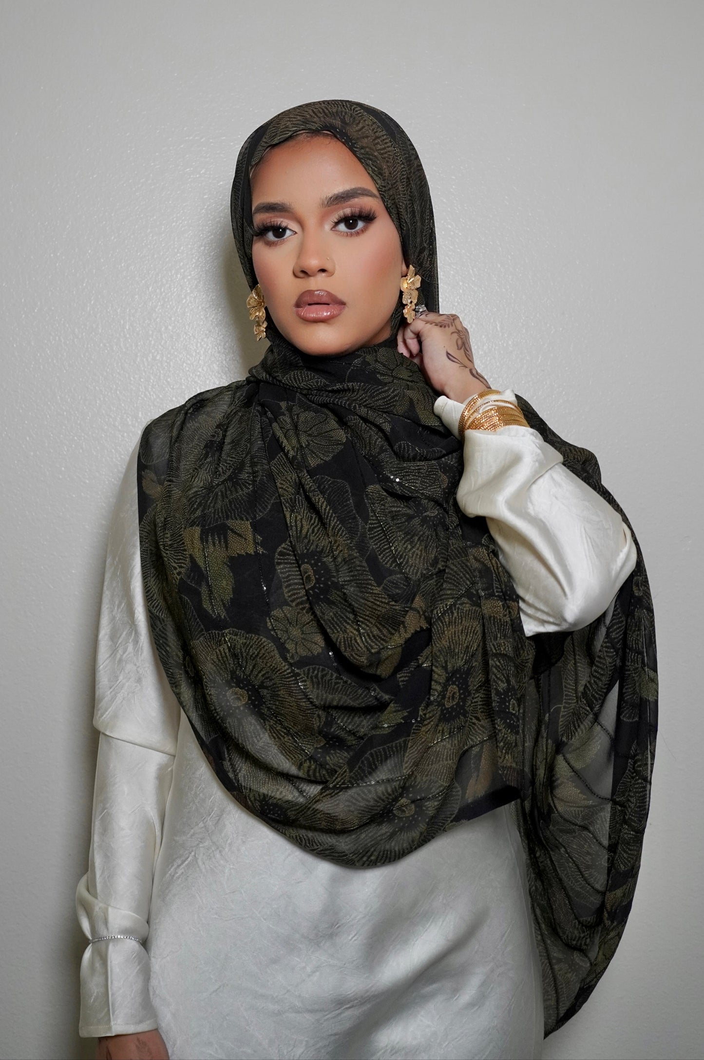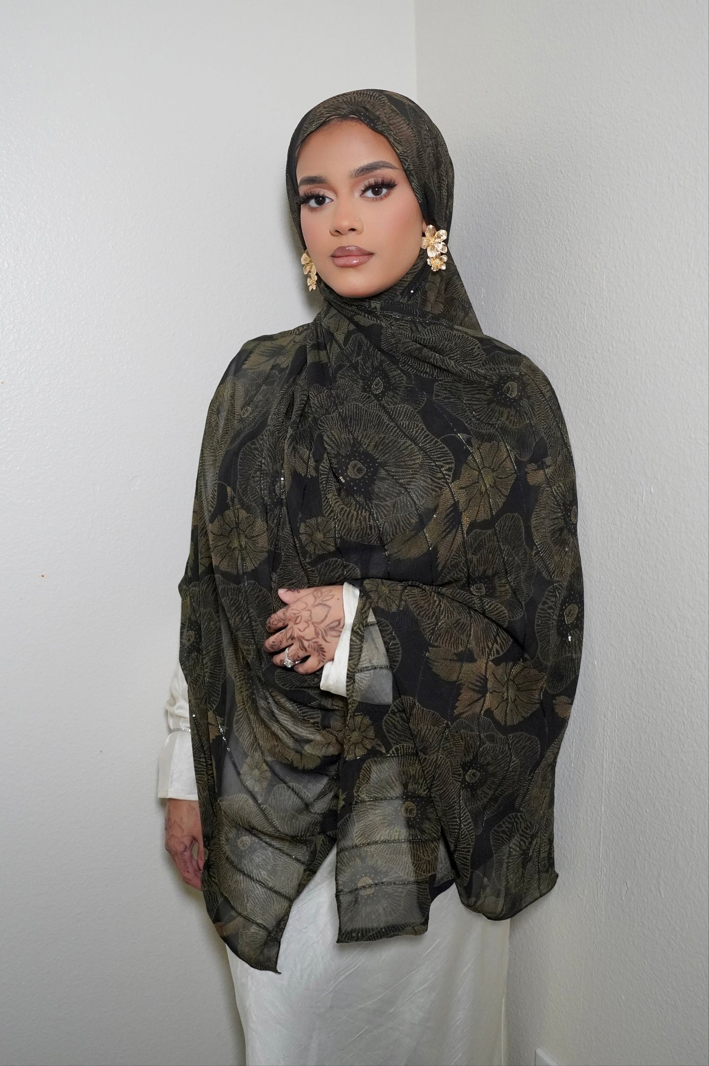 Our Mirexa print hijab features a stylish satin chiffon watercolor design and raw edges for a seamless lay. Perfect for staying on-trend while maintaining modesty.